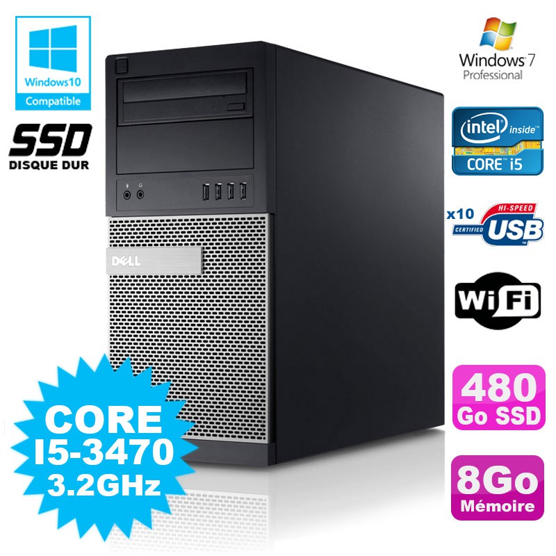 PC Tour Dell Optiplex 790 I5-3470 3.2Ghz 8Go 480Go SSD DVD WIFI Win 7