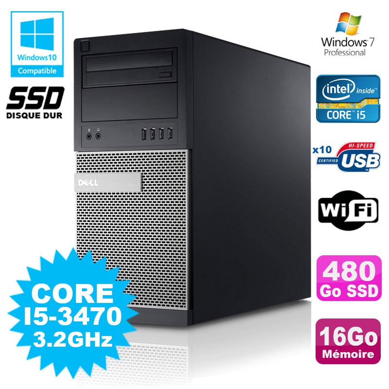 PC Tour Dell Optiplex 790 I5-3470 3.2Ghz 16Go 480Go SSD DVD WIFI Win 7