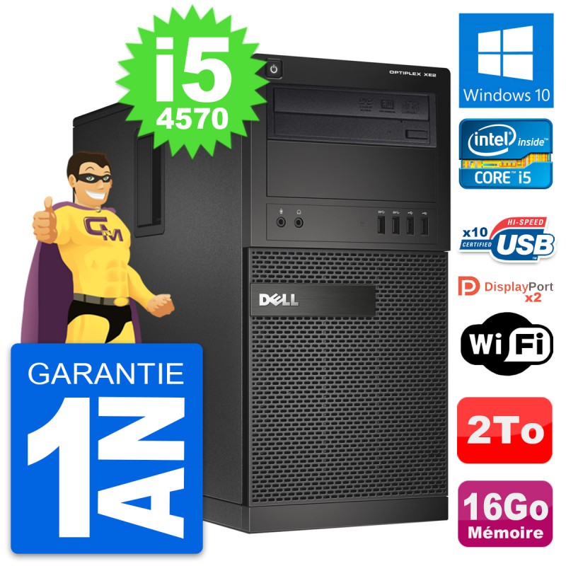 PC Tour Dell OptiPlex XE2 MT - Intel Core i5-4570 3.2 Ghz (6 Mo) - 16 Go DDR3 - Disque Dur 3,5" 2 To - Graveur DVD - Clef Wifi USB - Windows 10 - Garantie 1 an.