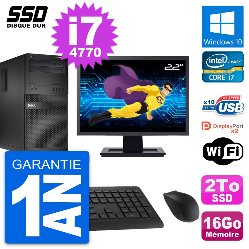 PC Tour Dell OptiPlex XE2 MT - Intel Core i7-4770 3.4 Ghz (8 Mo) - 16 Go DDR3 - SSD 2 To - Graveur DVD - Clef Wifi USB - Windows 10 - Livré avec Ecran 22" + clavier + souris (Marques et modèles variables) - Garantie 1 an.