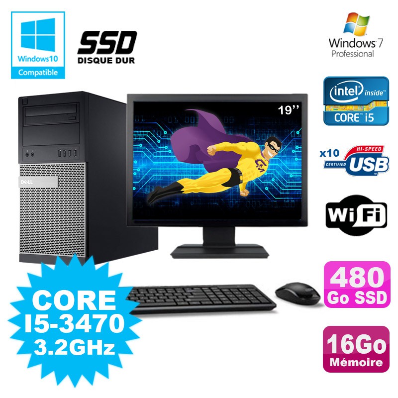 Lot PC Tour Dell 790 I5-3470 3.2Ghz 16Go 480Go SSD DVD WIFI Win 7 + Ecran 19"