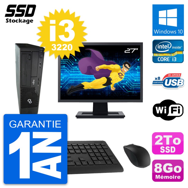 PC Fujitsu Esprimo E510 DT - Intel Core i3-3220 3.3 Ghz (3 Mo) - 8 Go DDR3 - SSD 2 To - Graveur DVD - Clef Wifi USB - Windows 10 - Livré avec Ecran 27" + clavier + souris (Marques et modèles variables) - Garantie 1 an.