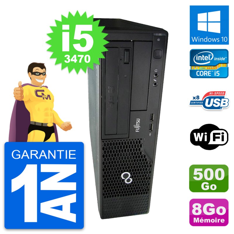 PC Fujitsu Esprimo E510 DT - Intel Core i5-3470 3.2 Ghz (6 Mo) - 8 Go DDR3 - Disque Dur 3,5" 500 Go - Graveur DVD - Clef Wifi USB - Windows 10 - Garantie 1 an.