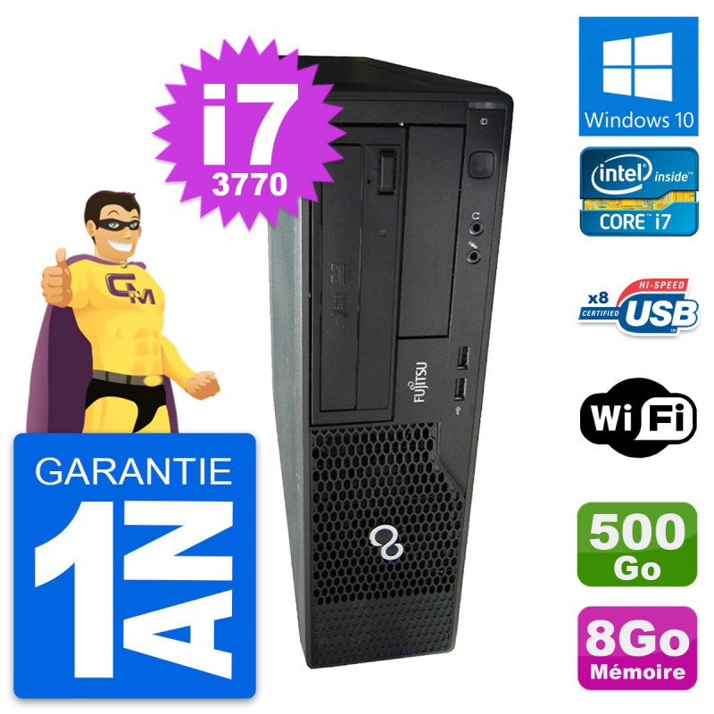 PC Fujitsu Esprimo E510 DT - Intel Core i7-3770 3.4 Ghz (8 Mo) - 8 Go DDR3 - Disque Dur 3,5" 500 Go - Graveur DVD - Clef Wifi USB - Windows 10 - Garantie 1 an.