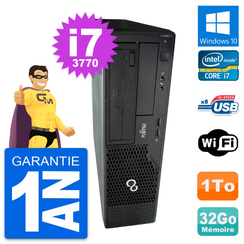PC Fujitsu Esprimo E510 DT Intel i7-3770 RAM 32Go Disque 1To Windows 10 Wifi