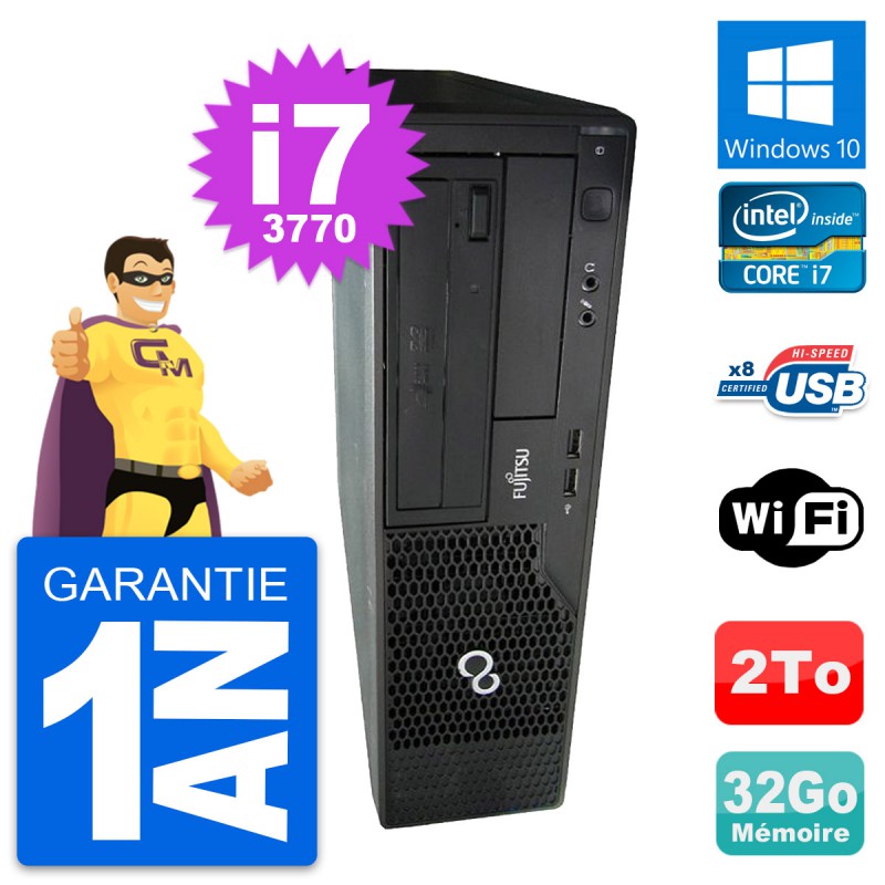 PC Fujitsu Esprimo E510 DT - Intel Core i7-3770 3.4 Ghz (8 Mo) - 32 Go DDR3 - Disque Dur 3,5" 2 To - Graveur DVD - Clef Wifi USB - Windows 10 - Garantie 1 an.