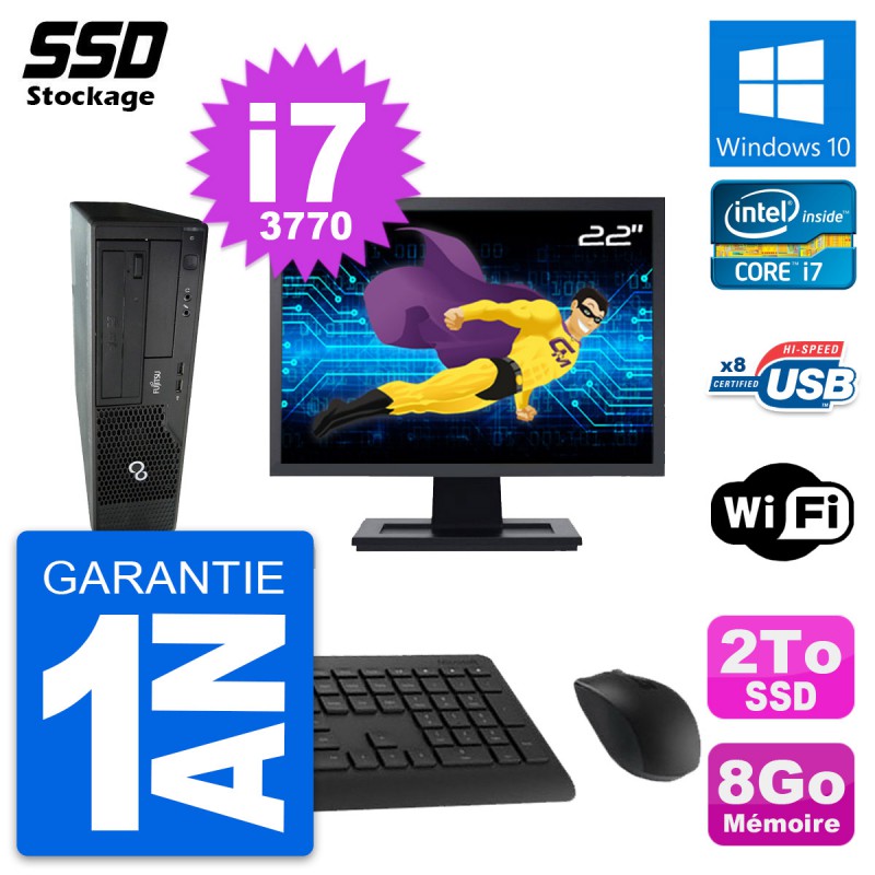 PC Fujitsu Esprimo E510 DT - Intel Core i7-3770 3.4 Ghz (8 Mo) - 8 Go DDR3 - SSD 2 To - Graveur DVD - Clef Wifi USB - Windows 10 - Livré avec Ecran 22" + clavier + souris (Marques et modèles variables) - Garantie 1 an.